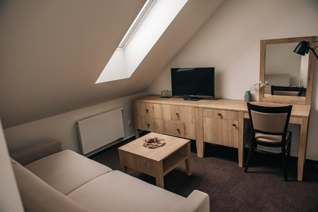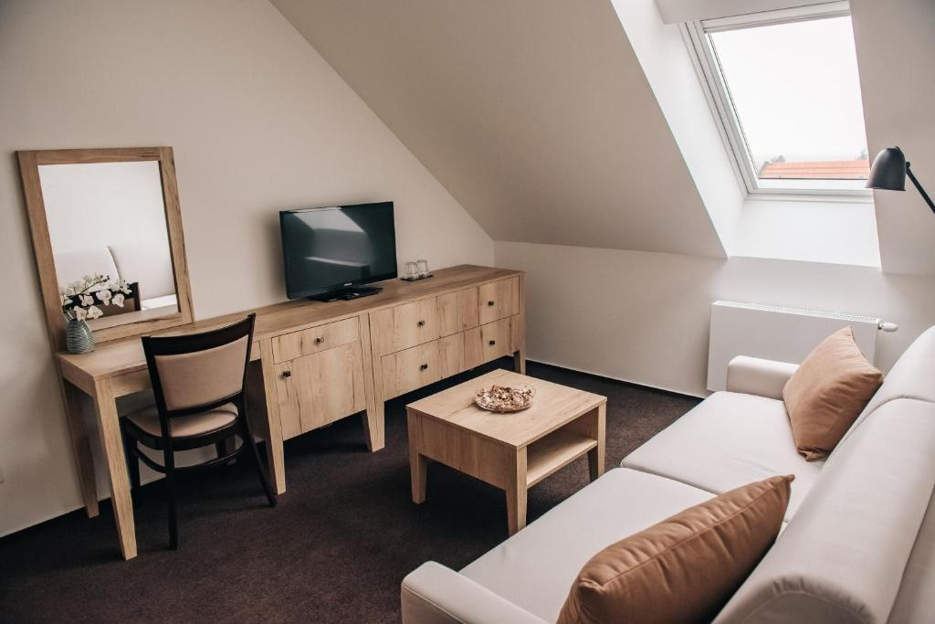 A nice option for people traveling in groups. Guest house «Krone Penzion» is located in Pezinok. This guest house is located in 5 km from the city center. You can take a walk and explore the neighbourhood area of the guest house.